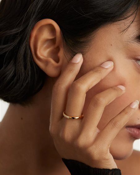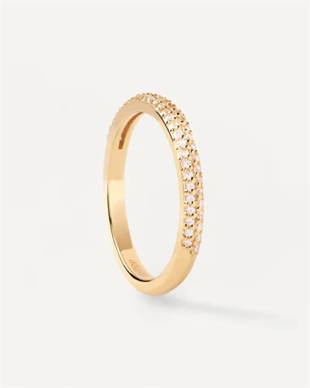 Anello Tiara Materiale: Argento sterling Finitura: Placcatura in Oro 18K Pietre: Zircone Bianco Diametro Pietre: 1 mm Spessore Anello: 2,1 mm Peso: 2.08 g