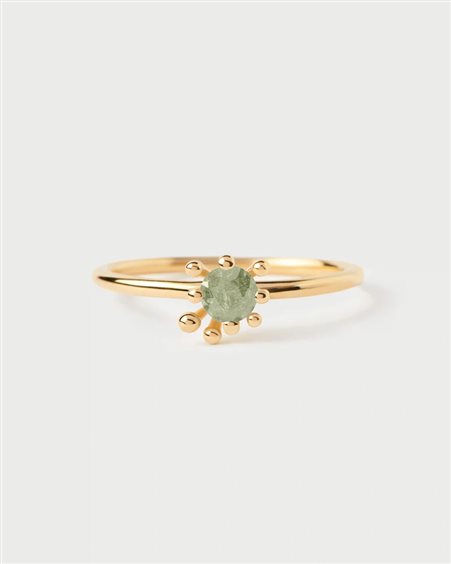ANELLO FLEUR VERDE Materiale: argento sterling Finitura: placcatura in oro 18k Pietre: zirconi verde oliva ghiacciato Spessore dell'anello: 5,50 mm Peso: 1,47 g