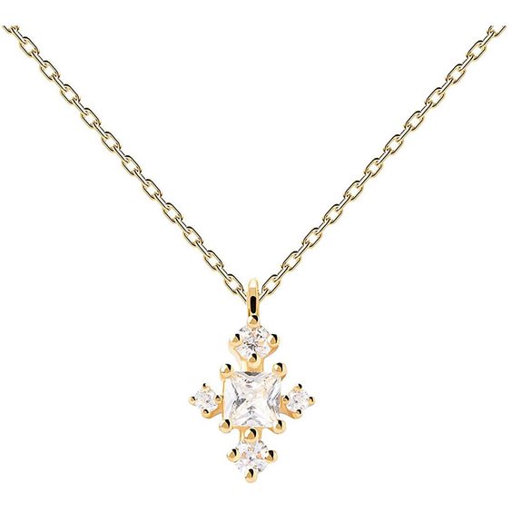 Collana realizzata in argento sterling 925 con placcatura in oro 18k. Lunghezza catena: chiusura regolabile da 40 cm a 50 cm. Dimensioni del ciondolo: 10 x 7 mm
