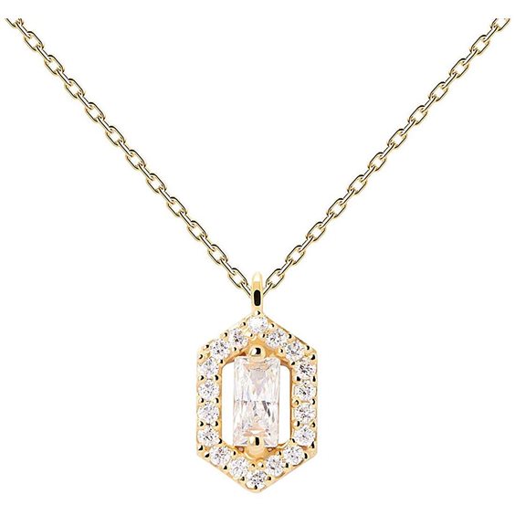 Collana realizzata in argento sterling 925 con placcatura in oro 18k. Lunghezza catena: chiusura regolabile da 40 cm a 50 cm. Dimensioni del ciondolo: 7 x 10 mm