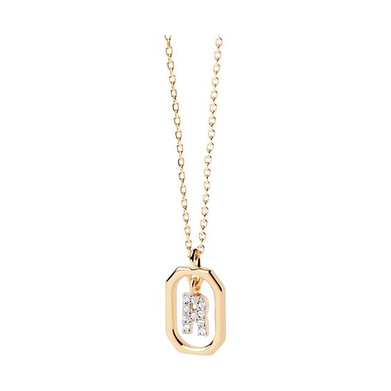 MATERIALE: Argento sterling FINITURA: Placcatura in oro 18K PIETRE: Zirconi Bianchi DIAMETRO DELLE PIETRE: 0,8 mm DIMENSIONI DEL CIONDOLO: 9 x 7 mm LUNGHEZZA DELLA CATENA: Chiusura regolabile da 40 cm a 50 cm SPESSORE DELLA CATENA: 0,5 mm PESO: 2,10 g Lettera R