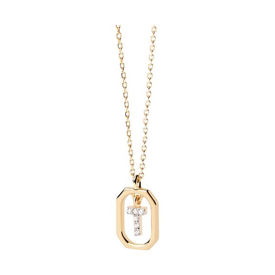 MATERIALE: Argento sterling FINITURA: Placcatura in oro 18K PIETRE: Zirconi Bianchi DIAMETRO DELLE PIETRE: 0,8 mm DIMENSIONI DEL CIONDOLO: 9 x 7 mm LUNGHEZZA DELLA CATENA: Chiusura regolabile da 40 cm a 50 cm SPESSORE DELLA CATENA: 0,5 mm PESO: 2,10 g Lettera T