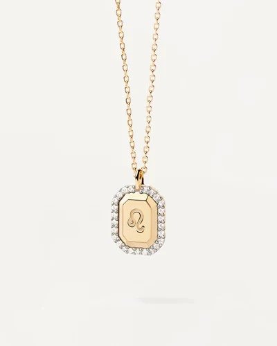 MATERIALE: Argento sterling FINITURA: Placcatura in oro 18K PIETRE: Zirconi bianchi DIAMETRO DELLE PIETRE: 1 mm DIMENSIONI DEL CIONDOLO: 11,8 x 9,2 mm LUNGHEZZA DELLA CATENA: Chiusura regolabile da 40 mm a 50 cm PESO: 3,5 g