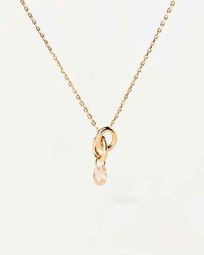COLLANA LILY PESCA Materiale: argento sterling Finitura: placcatura in oro 18k Pietre: zirconi pesca Lunghezza della catena: chiusura regolabile da 400 cm a 500 cm Dimensione della pietra: 6 mm Peso: 2,32 g
