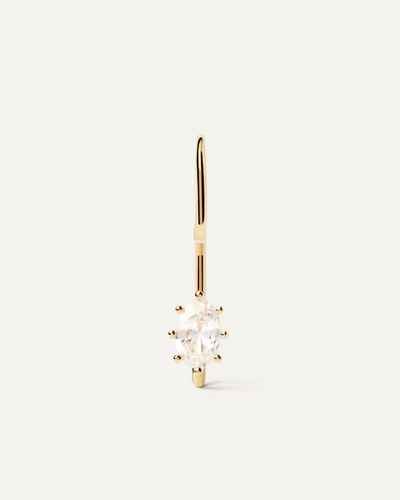 Materiale: argento sterling Finitura: placcatura in oro 18k Pietre: zirconi bianchi Dimensioni delle pietre: 6 x 4 mm Lunghezza: 2,10 cm Peso: 0,75 g