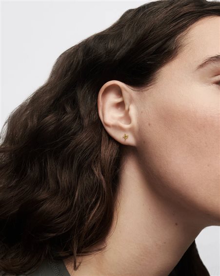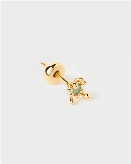 Orecchino a cerchio singolo Fleur Verde Materiale: Argento sterling Finitura: Placcatura in Oro 18K Pietre: Zirconi verde oliva ghiacciato Spessore: 5,50 mm Peso: 0,40 g