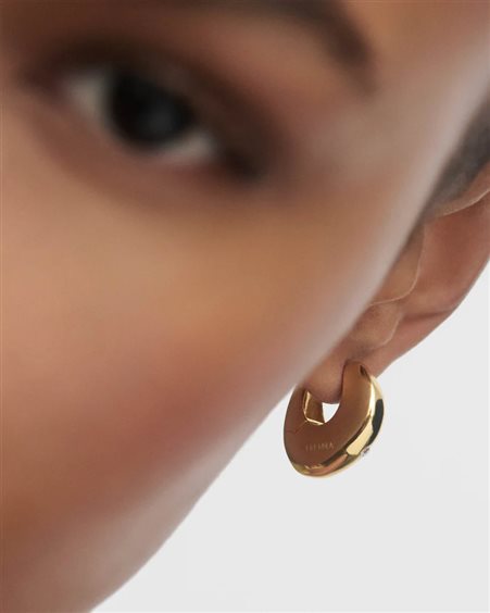 Orecchini a cerchio Wave Orecchini scultorei dal design asimmetrico ornati di zirconi bianchi Materiale: Argento sterling (100% argento riciclato) Finitura: Placcatura in Oro 18K Pietra: Zirconi bianchi Altezza: 17,5 mm Larghezza: 7,7 mm Lunghezza: 17,3 mm Peso: 9,91 g