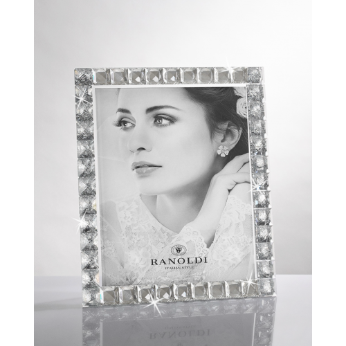 Cornice portafoto in cristallo con elementi decorativi sui lati in vera foglia argento Dimensione interna foto cm 20x25