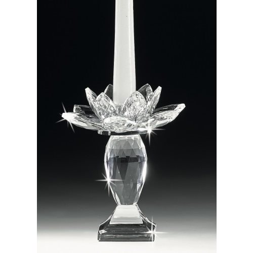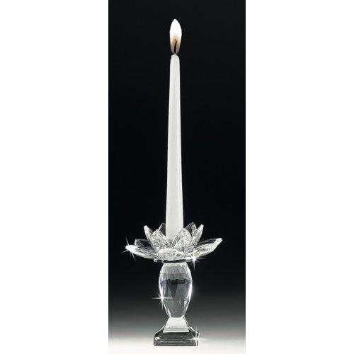 Portacandele in cristallo ad una fiamma con fiore di ninfea. Dimensioni 12x12x14 cm