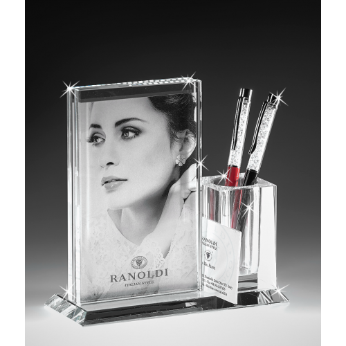 Set da scrivania in cristallo - portapenne con portafoto dimensioni cm 17x17x17