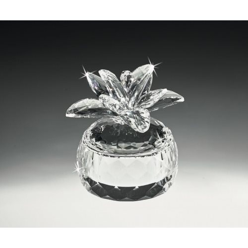 Scatola in cristallo con tappo a forma di fiore. dimensioni 11x11x11 cm