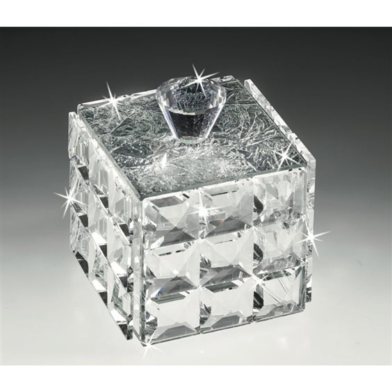 Scatola portagioie in cristallo con coperchio in foglia d'argento Dimensioni 10x10x14