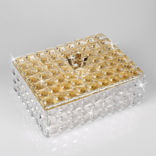 Scatola in cristallo con elementi dorati in vera foglia oro dimensioni cm 22x18x10