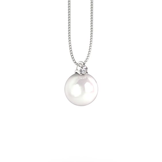 Girocollo in oro 18kt con pendente composto da perla naturale colore bianco e Diamante naturale. Modello catenina: veneziana con chiusura con moschettone semplice. Questo gioiello è accompagnato da certificato fotografico riportante qualità e caratteristiche delle pietre.