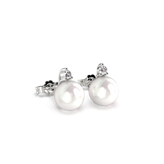 Orecchini in oro bianco 18kt cn perle sferiche Akoya e diamante incastonato. Montatura orecchini: perno e farfallina Questo gioiello è accompagnato da certificato fotografico riportante caratteristiche e qualità.