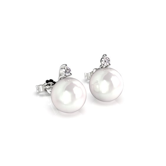 Orecchini in oro bianco 18kt cn perle sferiche Akoya, colore bianco e diamante incastonato. Montatura orecchini: perno e farfallina Questo gioiello è accompagnato da certificato fotografico riportante caratteristiche e qualità.