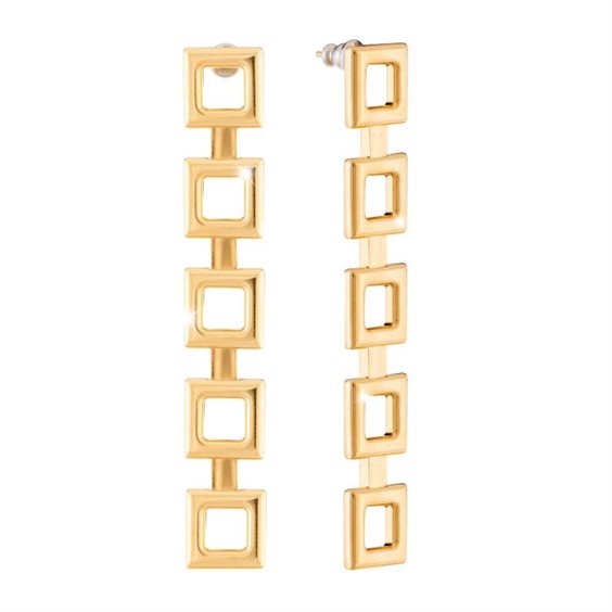 Orecchini Ludi in bronzo placcato oro a catena a maglia quadrata. Lunghezza orecchino 10 cm circa.