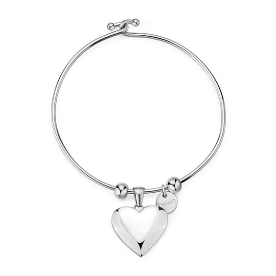 Bracciale rigido in acciaio 316L con sfere in acciaio e pendente a forma di cuore.