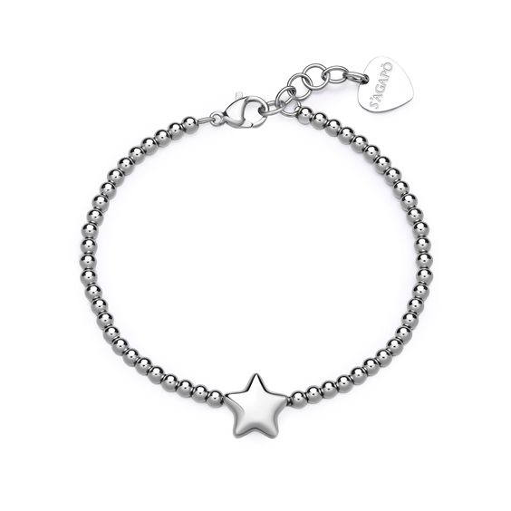 Bracciale STELLAR SSE43 Bracciale con sfere in acciaio 316L con sfere e centrale a stella. Metalli: Acciaio Finiture: nessuna Simboli: Stella Misura bracciale: 185mm Collezione: STELLAR