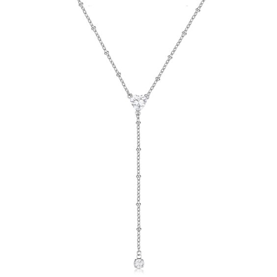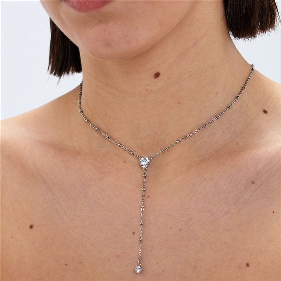 Collana cravattino in acciaio 316L con cubic zirconia centrale a forma di cuore.