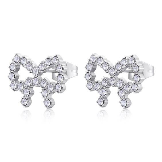 Orecchini TWINKLE Orecchini a lobo a forma di fiocco in acciaio 316L e cristalli. Metalli: Acciaio Pietre: cristalli Finiture: nessuna Simboli: Fiocco Misura orecchini: 15mm Collezione: TWINKLE