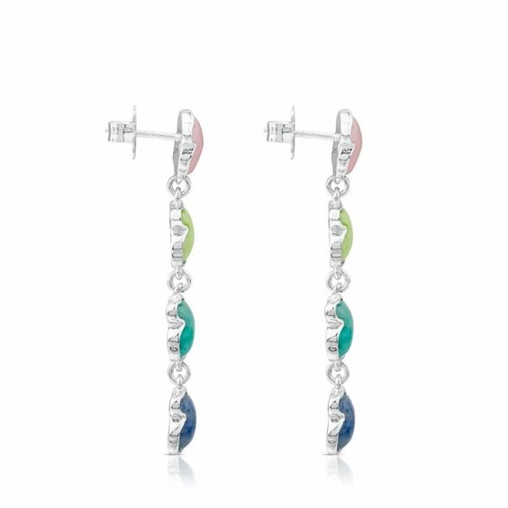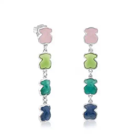 Orecchini da donna Tous pendenti in argento con quattro orsetti impreziositi da pietre naturali: - amazonite - gaspetite - dumortierite - quarzo rosa Lunghezza 4.65 cm