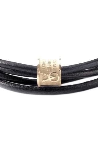 Bracciale in pelle nappa nera con inserto in argento 925 T-Gold con preghiera 'L'Angelo di Dio' in latino. Lavorazione in rilievo.