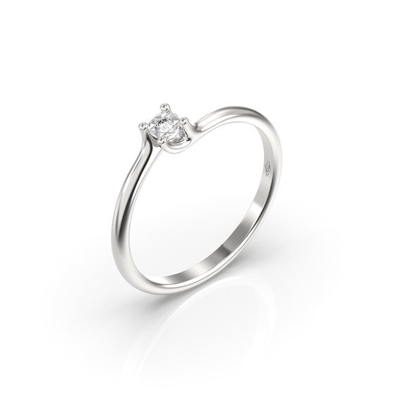 Anello solitario in oro bianco 18kt con incastonato diamante naturale. Montatura Valentine. Il gioiello è accompagnato da certificato fotografico riportante qualità e caratteristiche specifiche.