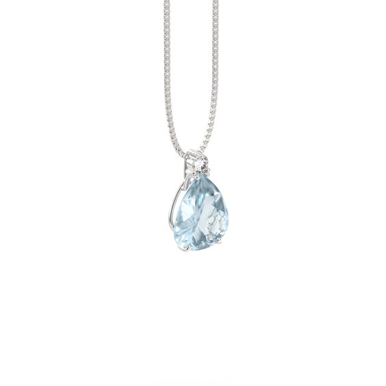 Girocollo in oro bianco 18kt con acquamarina taglio a goccia e un diamante incastonato nella parte superiore. Modello catenina: veneziana Chiusura con moschettone semplice Questo gioiello è accompagnato da certificato fotografico riportante qualità e caratteristiche.