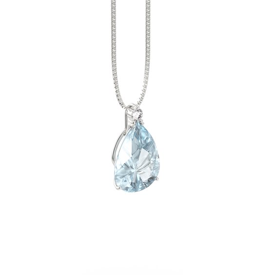 Girocollo in oro bianco 18kt con acquamarina taglio a goccia e un diamante incastonato nella parte superiore. Modello catenina: veneziana Chiusura con moschettone semplice Questo gioiello è accompagnato da certificato fotografico riportante qualità e caratteristiche.
