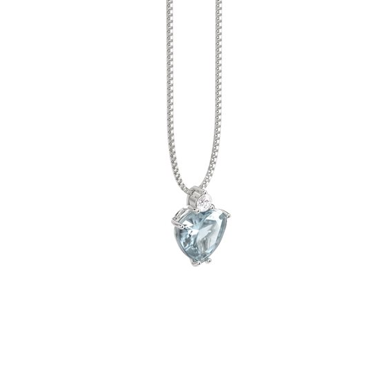 Girocollo in oro 18kt con acquamarina pendente a forma di cuore e Diamante. Questo gioiello è accompagnato da certificato riportante caratteristiche e qualità.