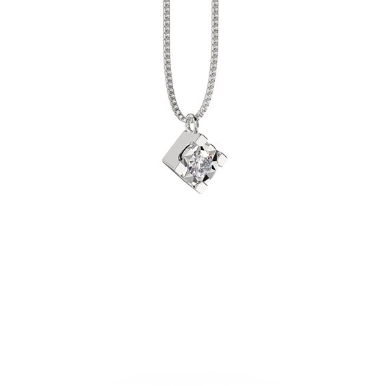 Girocollo in oro bianco 18kt con punto luce pendente. Diamante naturale incastonato con montatura a griffe. Modello catenina: veneziana Il gioiello è accompagnato da certificato fotografico riportante qualità e caratteristiche specifiche.