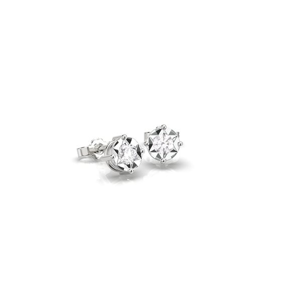 Orecchini in oro bianco 18kt. Diamanti naturali incastonati con montatura a griffe. Orecchini a lobo con perno e farfallina. Il gioiello è accompagnato da certificato fotografico riportante qualità e caratteristiche specifiche.