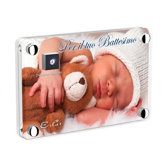 DIAMANTE IN BLISTER PERSONALIZZABILE. Puoi scegliere di personalizzare il tuo regalo scegliendo tra tante immagini e dediche diverse! CARATTERISTICHE Pietra: Diamante “Bianco” Peso: 0,05ct Purezza: G-VS Confezione: Confezione Light Misure: 8,5 cm x 5,5 cm DIAMANTE “BIANCO” Questo blister non solo protegge il diamante ma amplifica e valorizza l’effetto visivo della pietra. Un elegantissimo cofanetto, come tocco finale, esalta tutto lo splendore del diamante nel blister, riflettendo con intensità la qualità e valore del prodotto Eilat Diamonds. CONFEZIONE LED La Confezione Led è dotata di due speciali faretti che esaltano la brillantezza del diamante Eilat Diamonds e i colori della card personalizzata, rendendo speciale il tuo dono, per un effetto unico e sorprendente. Raffinata e originale la Confezione Led custodisce mirabilmente il tuo Regalo Unico.