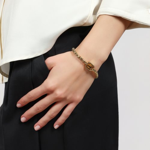 Bracciale Joya cristallo giallo Bracciale catena veneziana placcato oro con cristallo giallo di taglio smeraldo. Misura 19,00 cm. Collezione Joya. Lasciati avvolgere dalla calda luce dell'oro e dalla magia dei cristalli colorati. Un mix sensuale e seducente che ti farà innamorare. Scopri il fascino della collezione Joya con cristalli e pietre semipreziose. Indossa questo bracciale con i gioielli coordinati e rendi magico ogni look. Placcatura in oro giallo 24kt