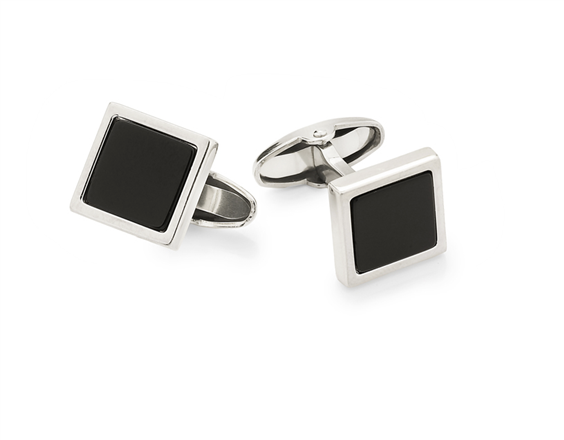 Eleganti gemelli da uomo in argento 925, quadrati, impreziositi da onice nero.