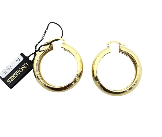 Orecchini cerchio in bronzo placcati in oro giallo 18ct. Diametro 2,5 cm.