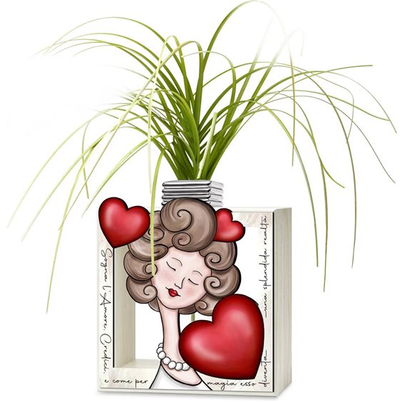 La collezione “ ARTE PROFUMI E PENSIERI”, sulla via dei grandi valori umani, suggerisce ad esprimere sentimenti ed emozioni con un piccolo oggetto d’arredamento in legno polifunzionale. Dotato di un contenitore in vetro, può essere utilizzato come vasetto monofiore o profumatore per ambienti. Accostando diversi temi si possono realizzare varie combinazioni a decorare i propri spazi in modo esclusivo ed originale. Ogni illustrazione riprodotta è stata disegnata a mano. Prodotto esclusivamente nelle Marche - Italy