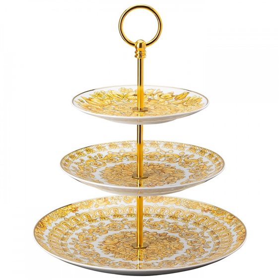 Étagère Medusa Rhapsody Alzata a tre piani realizzata in finissima porcellana, parte della collezione Medusa Rhapsody e impreziosita da una sequenza di fiori Barocco dorati. Medusa Rhapsody Piatti: 100% porcellana Da assemblare Made in Germany