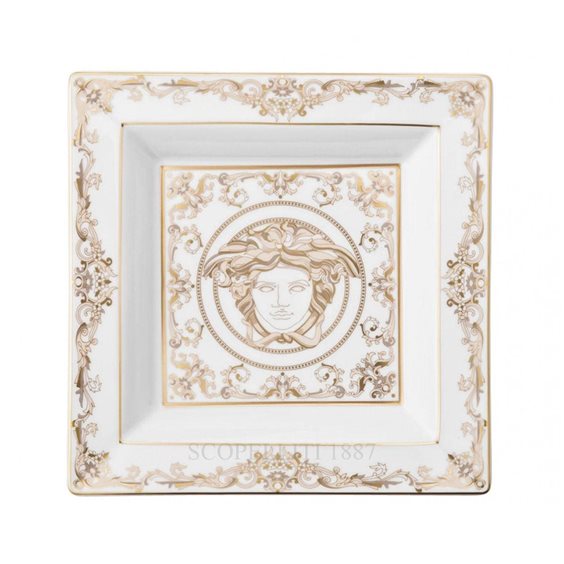Coppa Medusa Gala Versace 22 cm Coppa 22 cm Medusa Galadi Rosenthal Versace in confezione regalo. Proposta in confezione regalo, la coppa in porcellana con decoro Medusa Gala ci trasporta in epoche lontane. Oro pregiato e bianco perla sono i colori che impreziosiscono questo decoro facendo, così, da contorno all’iconica testa di Medusa posizionata al centro. Il decoro Medusa Gala impreziosisce la proposta glamour di Rosenthal Versace dedicata alla figura mitologica, presentando l’iconica raffigurazione della Medusa in una veste raffinatissima che al candore della porcellana bianca unisce ricercati motivi in filigrana d’oro. L’estetica barocca e il mondo lussuoso della maison Versace trovano nella collezione Medusa Gala un connubio speciale con la pregiata qualità dei manufatti Rosenthal, una delle migliori aziende al mondo per la creazione di porcellane in stile classico e rococò. La figura mitologica della Medusa, che col suo sguardo pietrifica chi osa guardarla direttamente negli occhi, rappresenta sicuramente uno dei maggiori motivi d’ispirazione di Gianni Versace, che la sceglie come marchio e la descrive così “Se la guardi non ti puoi più staccare da lei, Medusa è la seduzione”.