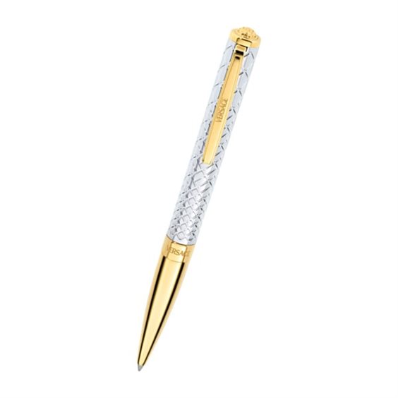 La penna roller in acciaio inossidabile presenta un pattern geometrico all-over sul fusto con l'iconica Medusa sulla parte superiore. L'elegante design è impreziosito da un Versace Logo inciso al laser sulla clip. Accessorio Medusa Incisione Versace Logo Fusto: acciaio inossidabile e placcatura ionica in oro giallo Custodia protettiva con Versace Logo Swiss Made Vestibilità e misura Lunghezza: 136 mm / Ø 13 mm Peso approssimativo: 42 g