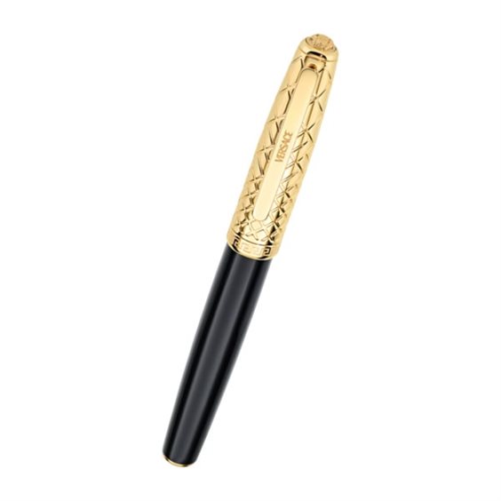 Una penna roller placcata in oro giallo con fusto in resina nera e cappuccio testurizzato. Presenta l'iconica Medusa in alto, il logo Versace inciso sulla clip e un'incisione con motivo Greca sull'anello. Emblema Medusa Logo Versace inciso Incisione Greca Fusto: placcatura in oro e resina nera Cappuccio: placcatura in oro Custodia protettiva con logo Versace Swiss Made Vestibilità e misura Lunghezza: 136 mm / Ø13 mm Peso approssimativo: 42 g