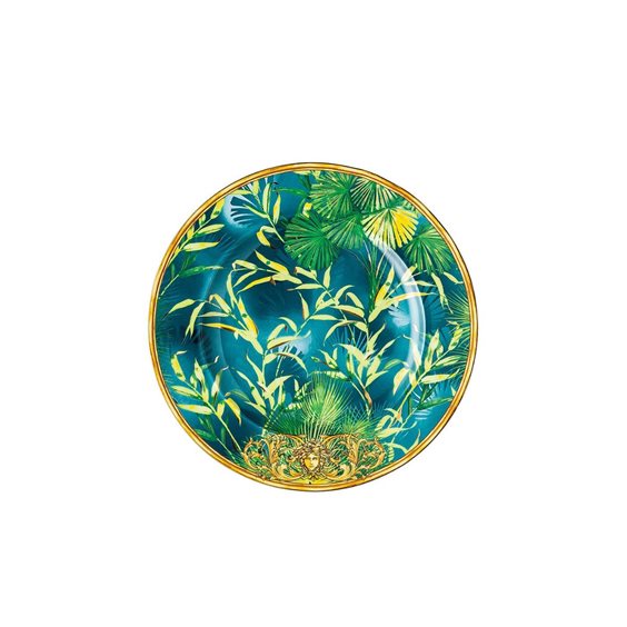 Piatto piano Jungle Animalier porcellana Versace Marchio: – Versace Collezione: Jungle Modello: piatto piano Dimensioni: Ø 18 cm Materiale: porcellana Colore: verde, blu, giallo