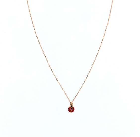 Collana Mini Coccinella Smaltata in argento 925°% galvanica rosata. Questa collana è composta da una maglia rolò e da un pendente smaltato a forma di coccinella. Chiusura con moschettone e catenella di allungo.