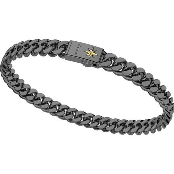 Bracciale a grumetta Zancan in argento 925. Il bracciale a maglia morbida in finitura nera lucida ha una chiusura a scatto caratterizzata dalla rosa dei venti Zancan. La particolare colorazione è ottenuta da una lavorazione al rodio nero che ne rende l'aspetto inalterabile. Un gioiello dalla lavorazione Zancan inedita che lo rende unico nel suo genere. Il bracciale fa parte della collezione Cubane, ispirata al mondo Hip-hop ed underground. Il bracciale è interamente realizzato a mano in Italia ed ha un peso di 29,30gr.